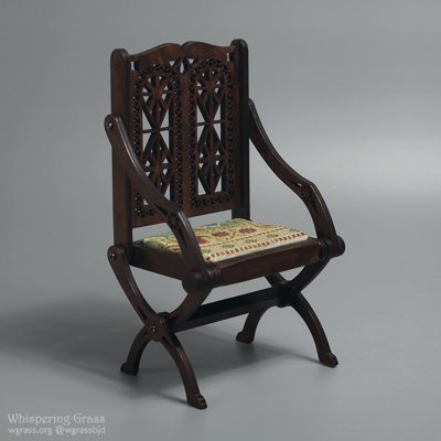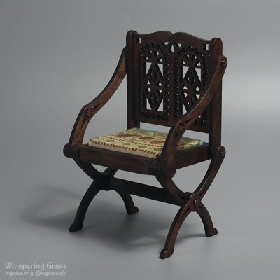 I have two Glastonbury type chairs for 1/4 dolls (40-45 cm high) in stock: one with a higher seat and another one with a lower one. Available in my Shop.
