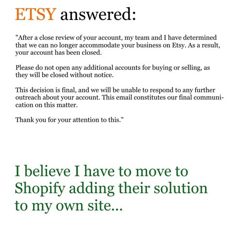 Unfortunately, my Etsy shop with digital patterns that I opened 2 months ago was blocked without any comprehensive explanation.