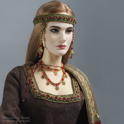 This One Of A Kind set is created in collaboration of Ukrainian fashion designer Victor Zavadsky and myself. The cape is made by him, and the dress, the head band & the necklace are made by me. We both used natural and tamed colors that match the colors that could be made with natural pigments available in Medieval times.