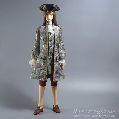 I made this outfit quite a few years ago, and I feel it's a time to put it to sale. Pale gray woven brocade with a floral patterns, bold tricorn hat, a lot of buttons on the front, and a delicate lace... See the outfit in the Shop.